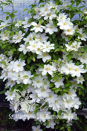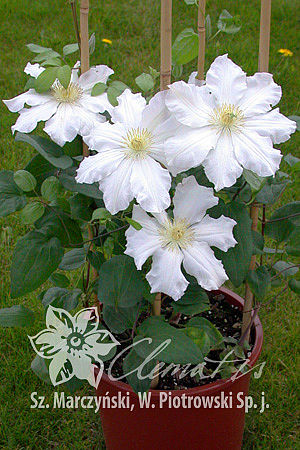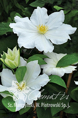 Японский сорт с чисто-белыми цветками и жёлтыми тычинками. Один из ранее цветущих сортов крупноцветковых: с середины мая до середины июня и повторно в июле-августе. Цветёт обильно. Особенно красиво выглядят посаженные на тёмном фоне.